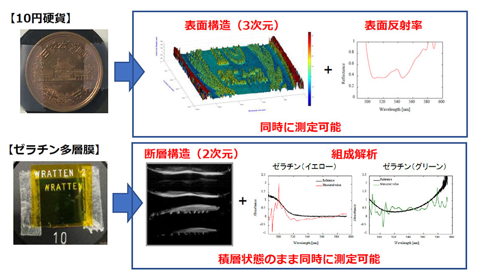 - 測定対象の属性情報(屈折率、透過率、反射率など)を同時に測定可能
