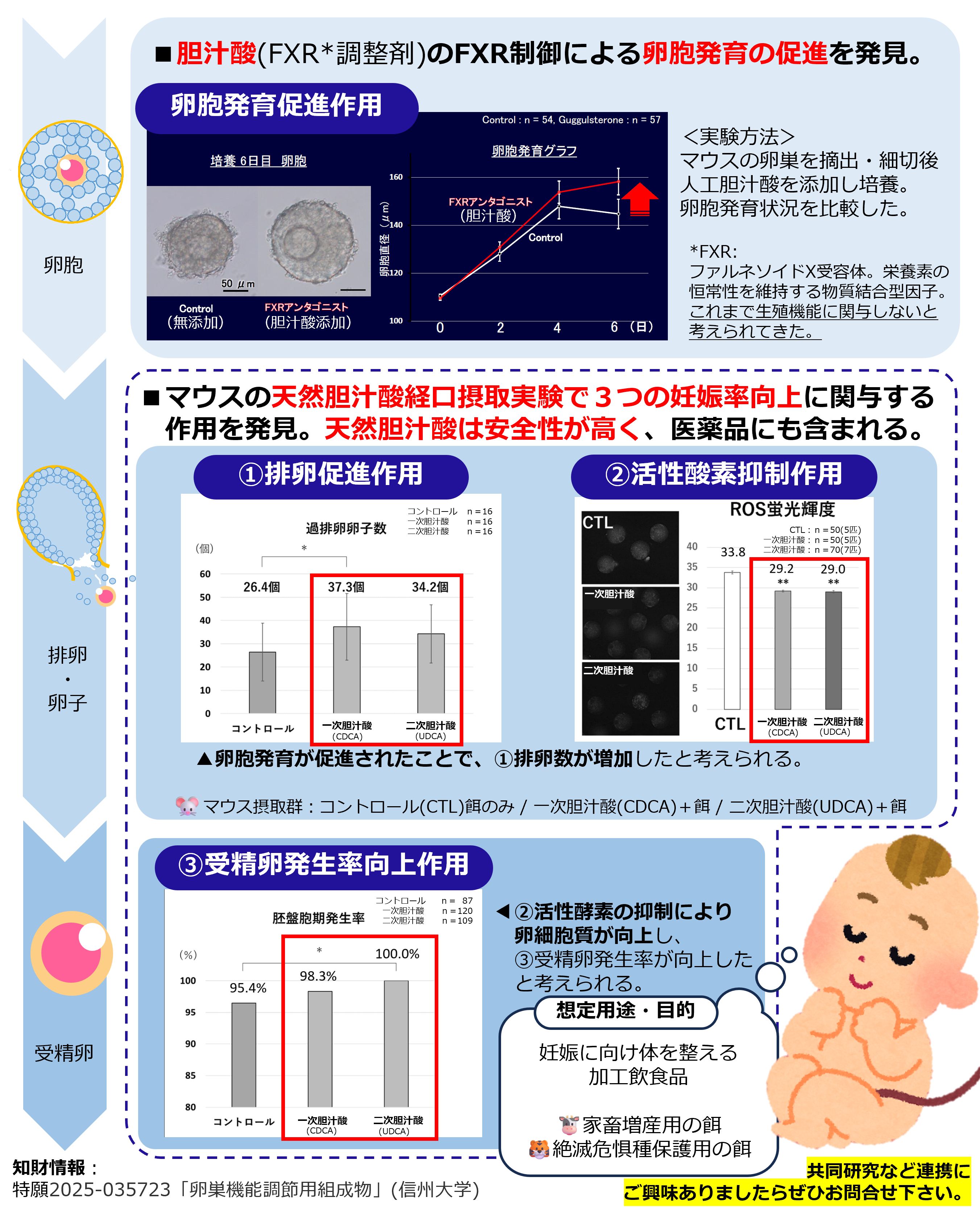 マウスの胆汁酸経口摂取実験で発見した3つの妊娠率向上に関与する作用 について